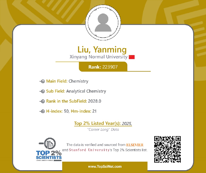 近日,美国斯坦福大学联合爱思唯尔数据库(Elsevier Data Repository)发布了2025年度《全球前2%顶尖科学家榜单》(World’s Top 2% Scientists)。我院刘彦明教授入选“终身科学影响力”排行榜。甘甜教授、王海波教授入选“年度科学影响力”榜单。