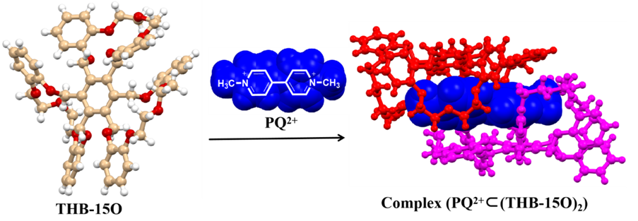 该项研究报道了三环六取代苯受体(THB-15O),通过两分子主体的协同作用,将PQ2+完全包封,形成2:1的包合物PQ²⁺⊂(THB-15O),从而显著降低PQ2+毒性。在液态、固态、气态下的包合作用分别通过¹H NMR滴定实验、单晶X射线衍射、密度泛函理论(DFT)、独立梯度模型(IGM)分析以及分子动力学(MD)模拟得到证实。两个THB-15O单元组装成一个接近封闭的超分子“壳”,通过物理隔离客体分子,从而抑制PQ2+诱导的氧化应激。MTT细胞活力实验证实了THB-15O的解毒作用。研究结果表明,完全的超分子包封是一种有效的解毒策略,该工作不仅证实了超分子主客体化学在解毒中的关键作用,而且为发展低毒性的治疗与解毒策略提供了新思路。