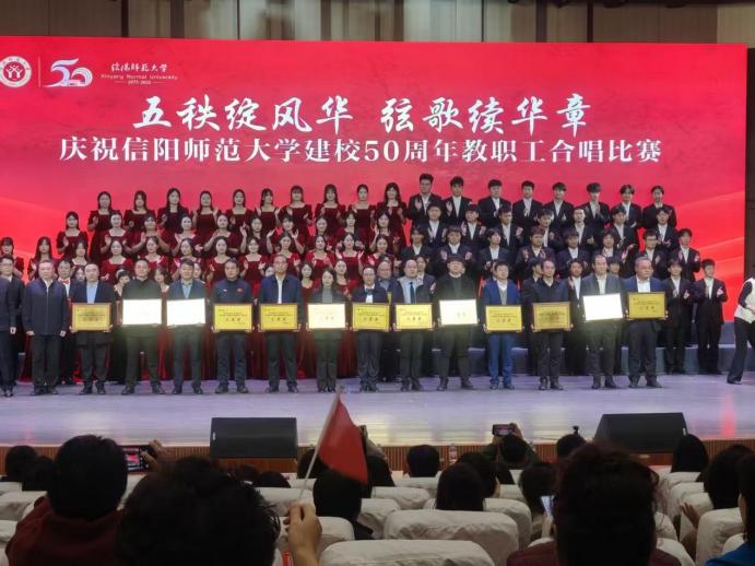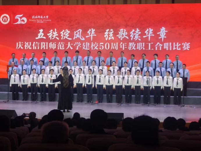 为庆祝信阳师范大学建校50周年,10月21日,我校“五秩绽风华 弦歌续华章”教职工合唱比赛于艺术楼音乐厅隆重举行。化学化工学院与各学院教师齐聚一堂,合唱献礼母校半世纪峥嵘岁月。