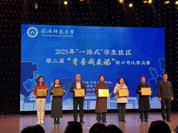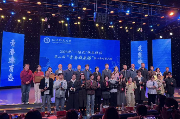 12月11日,由学生处主办、传媒学院承办的信阳师范大学2025年“一站式”学生社区第二届“青春我来说”脱口秀比赛决赛在社科楼演播厅落下帷幕,我院2024级化学一班杨亚仑在决赛中获“爆梗王”荣誉称号、2025级化学一班薛雨阳荣获“最佳人气奖”、2024级应用化学班许壮荣获三等奖。前期我院积极备赛,组织工作突出,获评“优秀组织单位”。