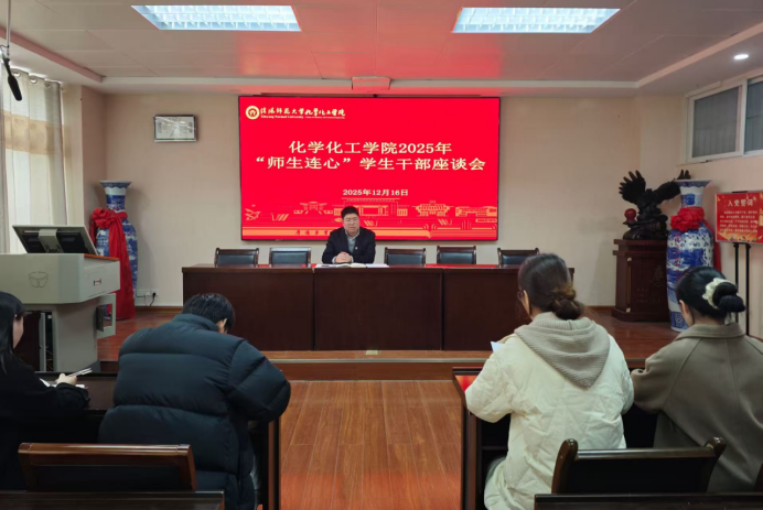 12月16日,化学化工学院举办2025年“师生连心”学生代表座谈会。学院党委书记吴志伟、团委书记赵方方与学生代表深入交流,会议由赵方方主持。