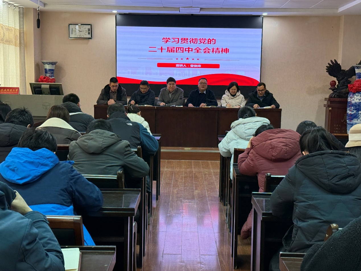 为深入学习贯彻党的二十届四中全会精神,巩固学习成果,转化学习效能,为学校高质量发展凝聚奋进力量,12月30日下午,化学与化工学院在407会议室召开党的二十届四中全会精神宣讲会。院长曹俊涛作专题宣讲,会议由学院党委书记吴志伟主持,学院领导班子成员及全体教师参加学习。