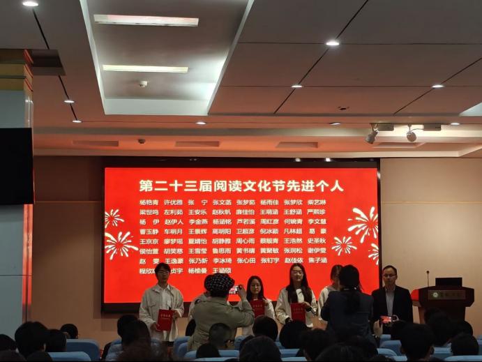 4月21日,在第31个世界读书日到来之际,我校“书香润心 阅见未来”第二十四届阅读文化节启动仪式于贤林讲坛顺利举行。副校长井强山,学校相关职能部门、部分学院及图书馆负责人,200余名师生代表共同参与。我院凭借扎实的书香校园建设工作,获评2025年度书香校园建设“十佳单位”。